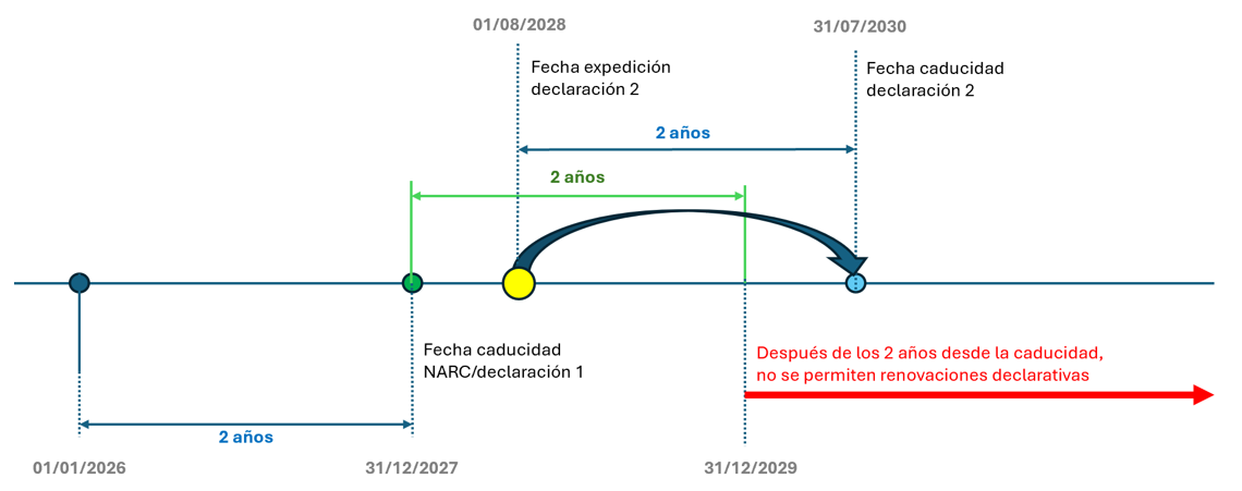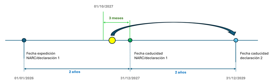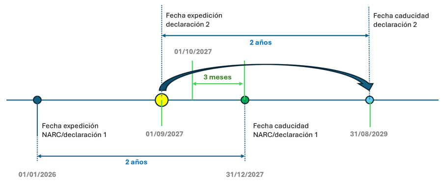 Si es firmada dentro de los dos años desde la fecha de expiración del NARC o de la anterior declaración, su validez se computará desde la fecha de firma de la declaración.